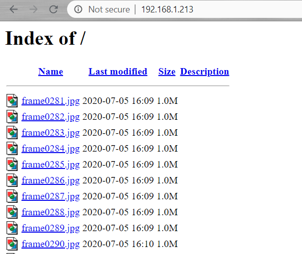 The Pi guide suggests moving the images to another, more powerful computer before rendering the video. To do this, I set up an Apache Tomcat HTTP web server that my laptop can reach over the home wifi network. The frames of timelapse are saved to the folder the web server displays to the web.